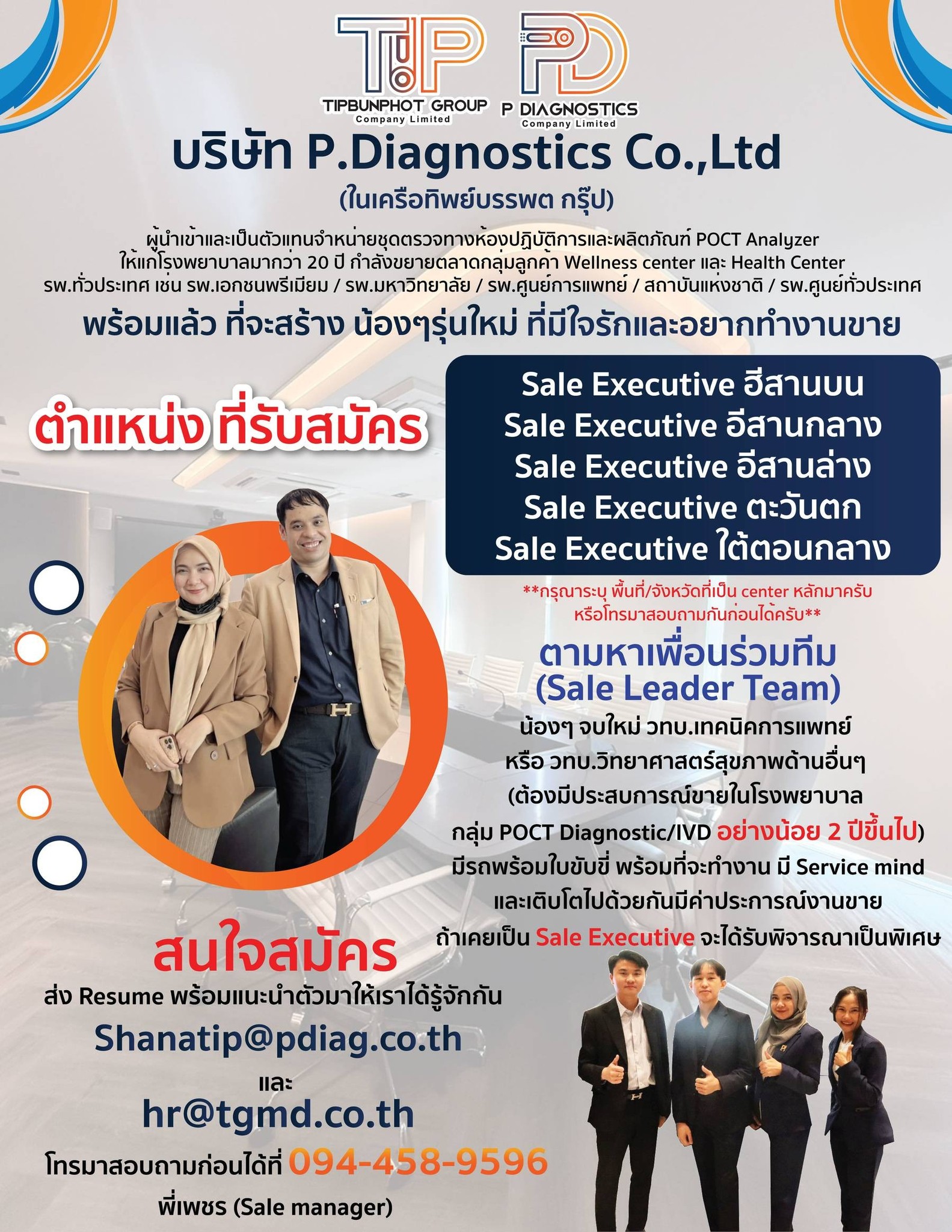 ส่ง Resume มาได้ที่ hr@tgmd.co.th /Buranan@pdiag.co.th